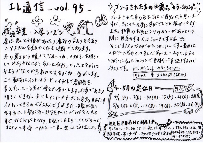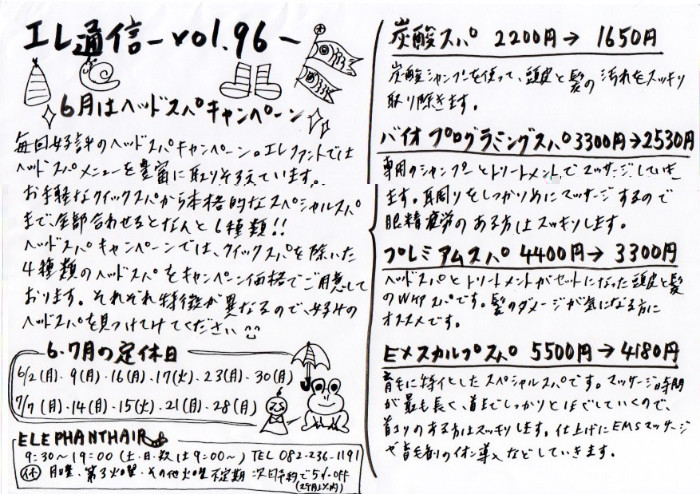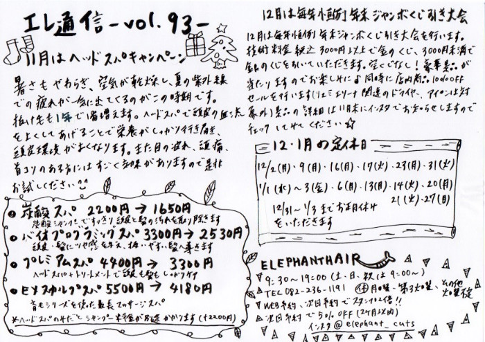 当店では定期的に「エレ通信」を発行しています。お得情報満載のエレ通信をお見逃しなく☆
